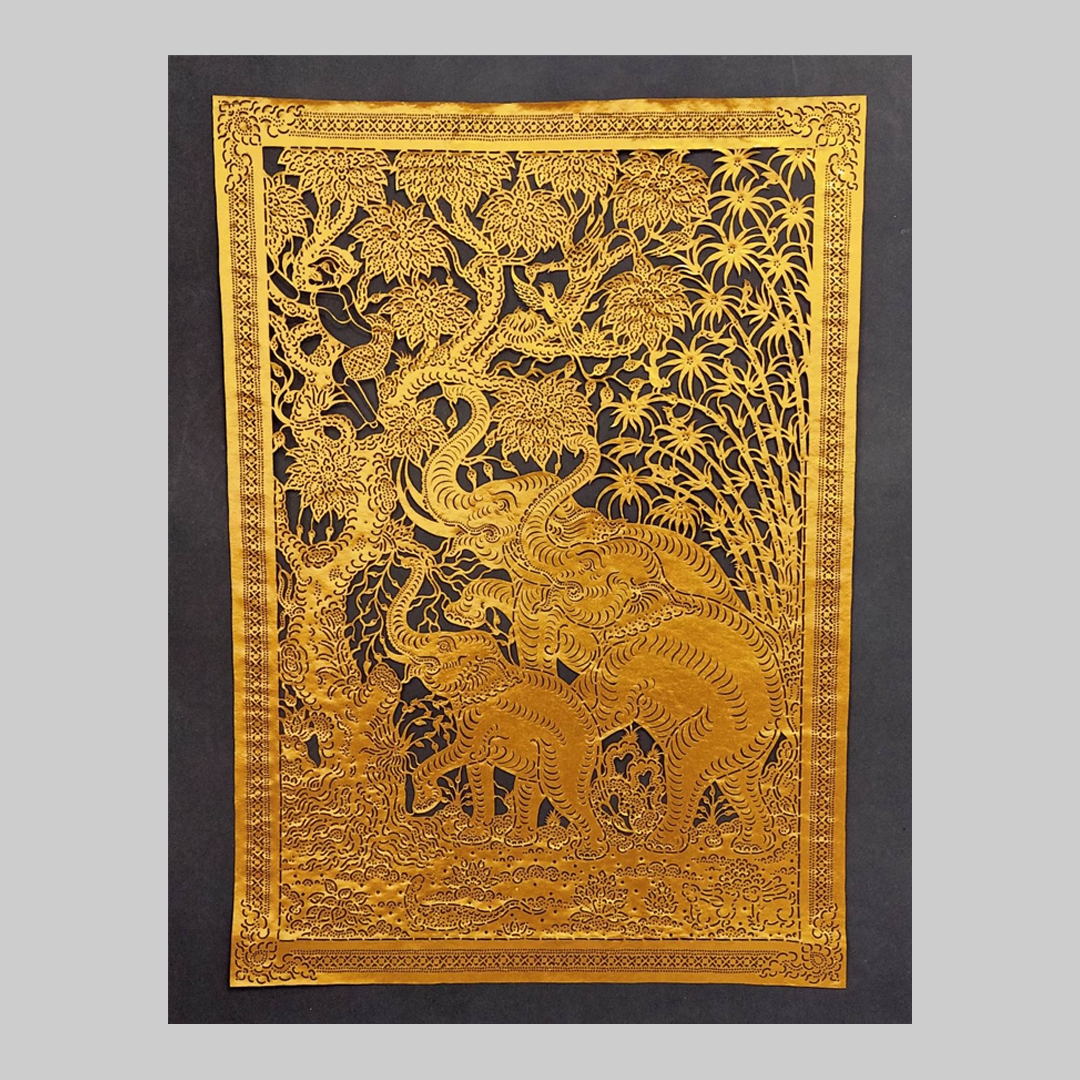 เทคนิค: แกะสลักจากหนังวัวแท้ เคลือบสีอะคริลิค
