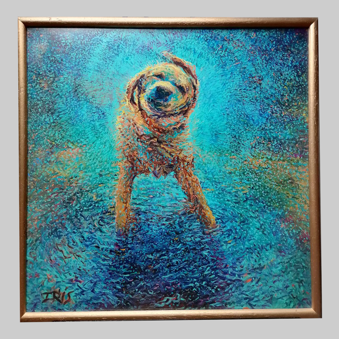 เทคนิค: ภาพสีน้ำมันพร้อมกรอบไม้สักแท้ติดกระจก