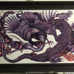 เทคนิค: งานอาร์ตด้วยปากกาเน้นลายเส้น และระบายสีด้วยสีไม้ (ขนาดรวมกรอบ 15 x 15 cm)