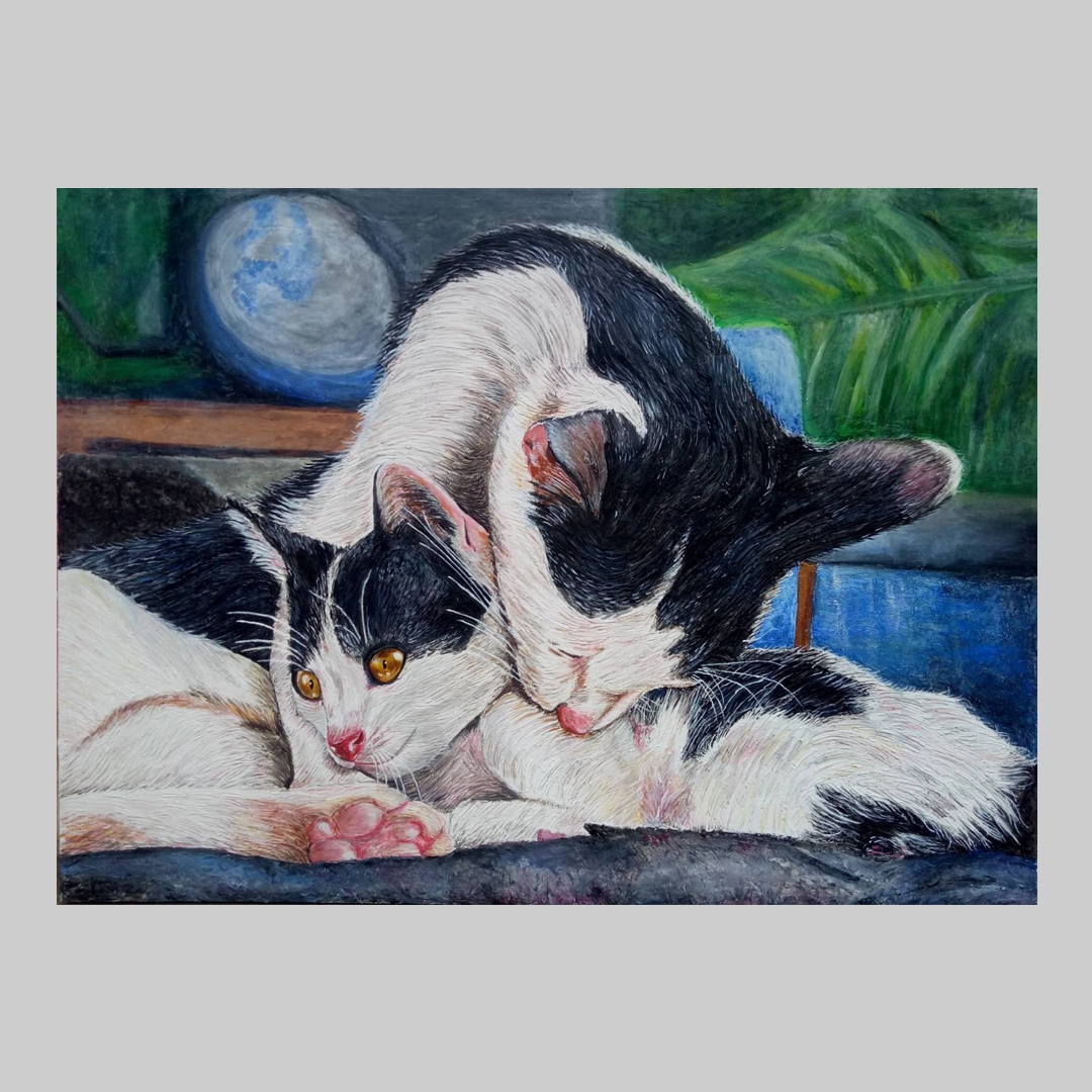 เทคนิค: ปาดเกรียงสีอะคริลิคและสีโป๊วผนังบนผ้าใบ